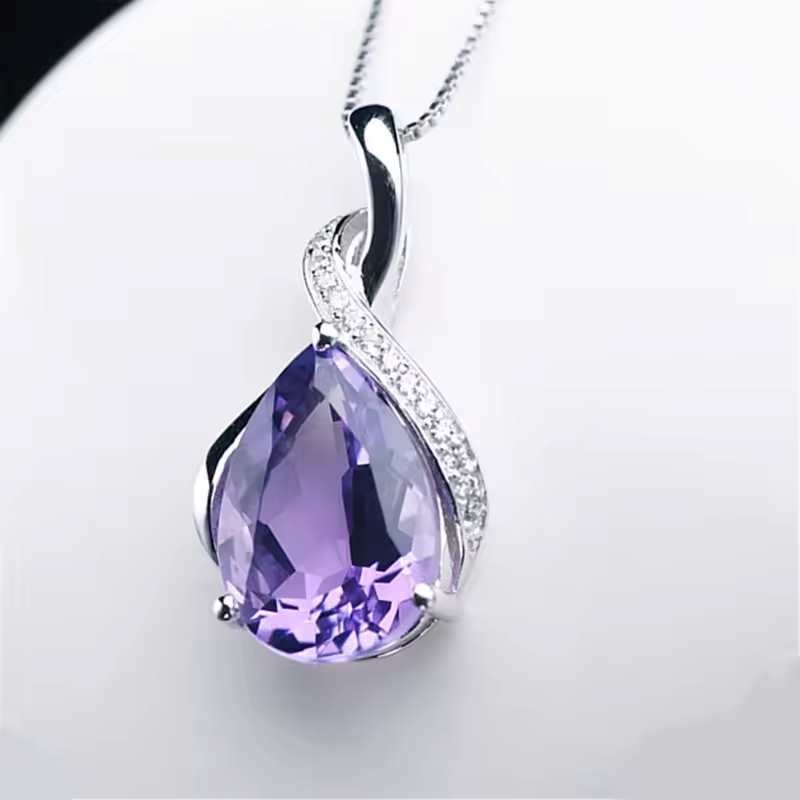 Silver Female Stone Pendant Chain Natural Amethyst & Aquamarine Necklace for Women Fashion Fine Jewelry Chain